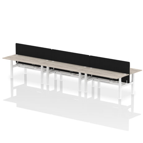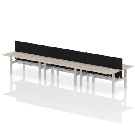 Air Back-to-Back Height Adjustable Bench Desk – 6 Person with Black Straight Screen