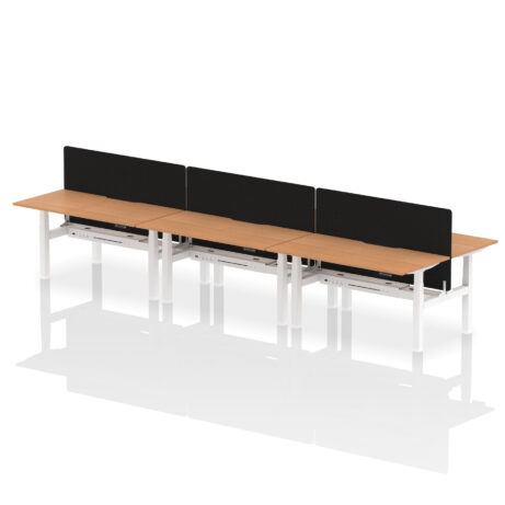Air Back-to-Back Scalloped Edge Height Adjustable Bench Desk – 6 Person with Black Straight Screen