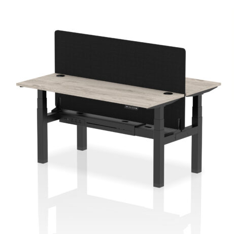 Air Back-to-Back Slimline Height Adjustable Bench Desk – 2 Person with Black Straight Screen