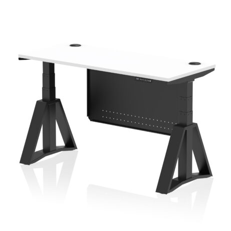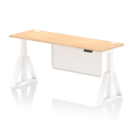 Air Height Adjustable Slimline Desk With Cable Ports With Steel Modesty Panel With Piste Foot