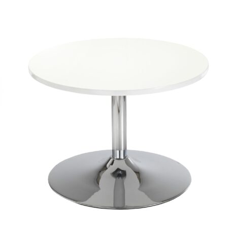 - A low table with a chrome trumpet base, suitable for waiting areas and breakout spaces.