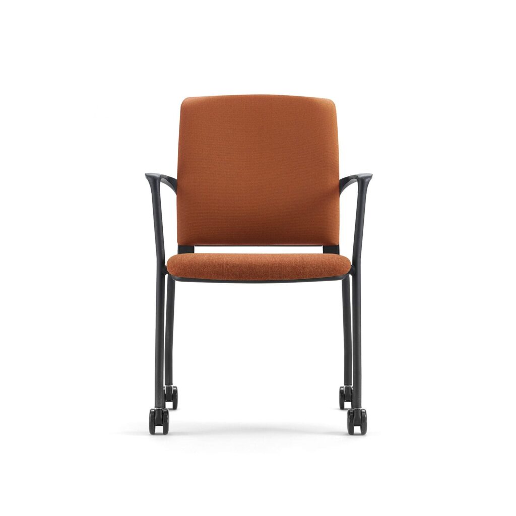 Complete family of meeting chairs with 5 frame options including stacking 4-legged & cantilever plus wheeled versions for movability. All have an upholstered seat but choose between an upholstered or mesh back for preferred aesthetics with no cost difference.