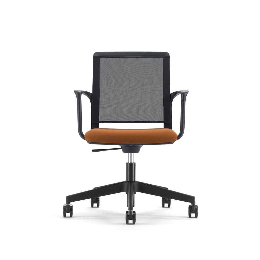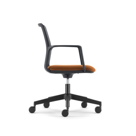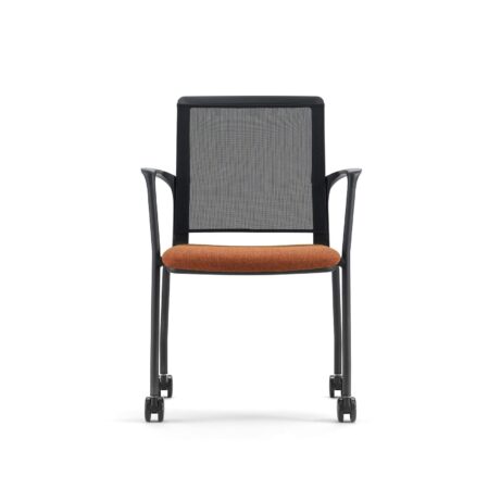 Complete family of meeting chairs with 5 frame options including stacking 4-legged & cantilever plus wheeled versions for movability. All have an upholstered seat but choose between an upholstered or mesh back for preferred aesthetics with no cost difference.