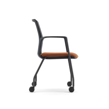 Complete family of meeting chairs with 5 frame options including stacking 4-legged & cantilever plus wheeled versions for movability. All have an upholstered seat but choose between an upholstered or mesh back for preferred aesthetics with no cost difference.
