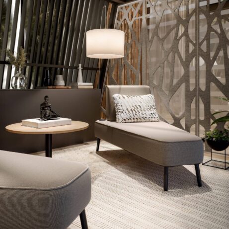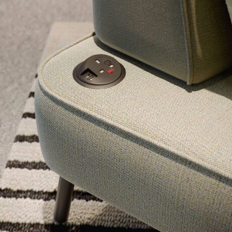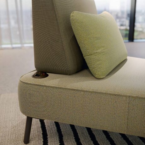 Upholstered with a soft seat pad and back, and with built-in power, Bask is the ideal product to encourage users to break away from their desks and explore new areas in the office. The movement away from desks and meeting rooms to more informal settings is understood to have a positive influence on the mental wellbeing of employees as they allow themselves to unwind.