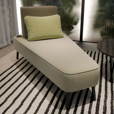 Bask is a day bed lounger inspired by the new ways of working. A relaxed design, reminiscent of a bed or sofa, Bask has been designed to invite the user to break away from the main office and unwind in a way most comfortable for them, whether by reading a book or completing individual work.