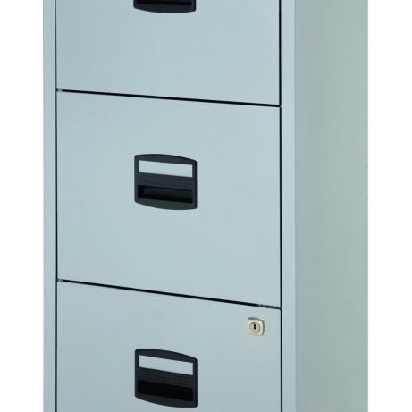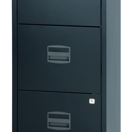 The Bisley A4 Personal Filer with 3 Drawers is the perfect solution for your home office filing needs. This Bisley 3 drawer personal filer is suitable for use with A4 suspension files and foolscap filing, making it versatile and practical. The 3 and 4 drawer units are supplied with 2 locks and 2 keys for each, ensuring your documents are secure. The moulded plastic centre pull handle makes it easy to open and close the drawers. With its sleek design and durable construction, the Bisley A4 Static Home Filer with 3 Drawers is a must-have for any home office. Stay organised and efficient with this reliable filing system.