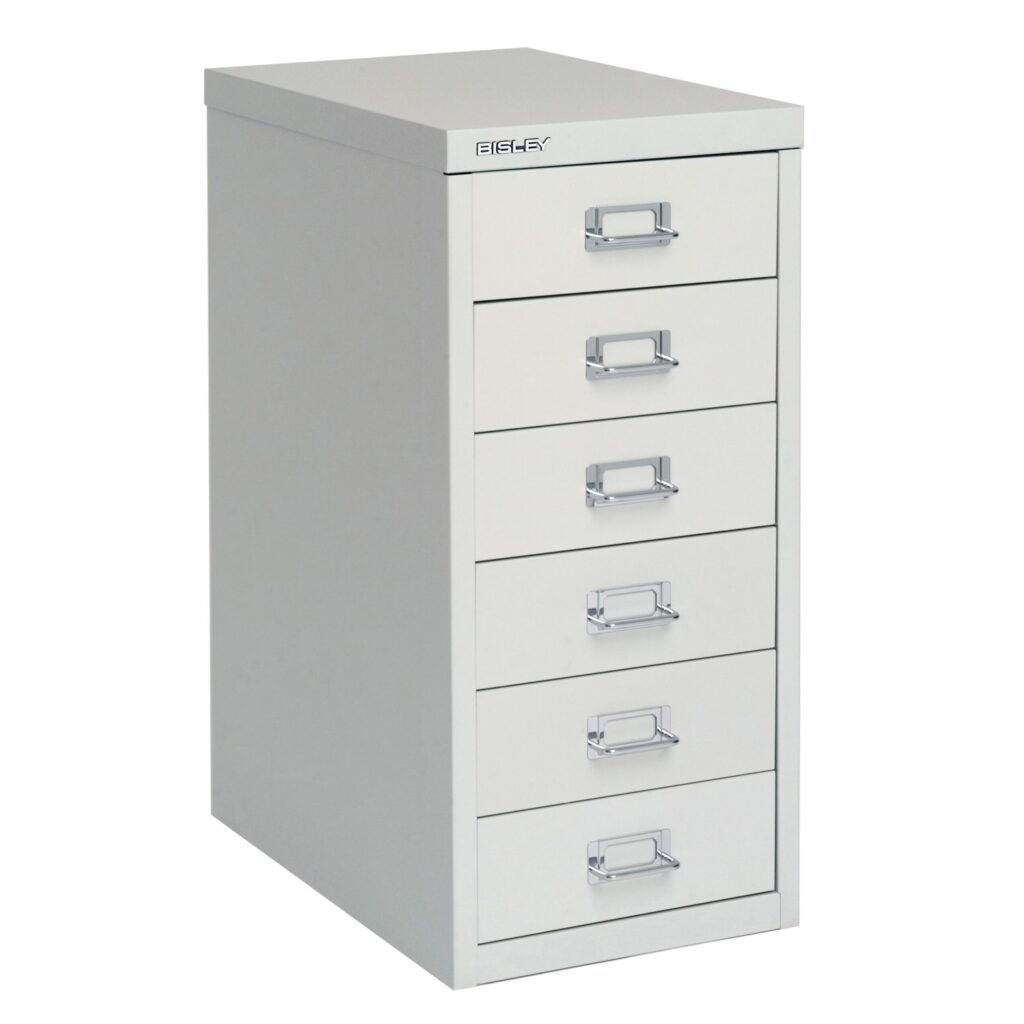 The Bisley 6 Drawer Home 29 Series Steel Multi-Drawer combines timeless design with durable construction and excellent functionality. Each of the six drawers features 100% extension on smooth, resistance -free slides, and the anti-tilt mechanism prevents the opening of a drawer when one is already open, for safe, easy use.