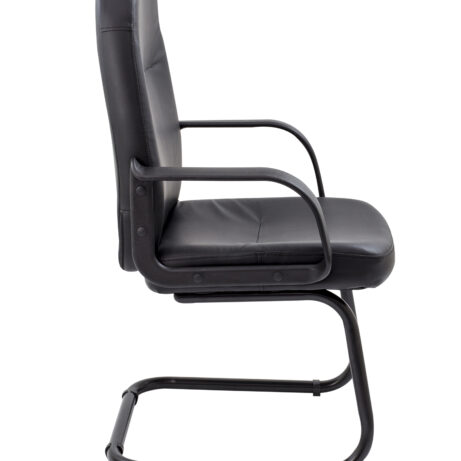 - Faux leather visitor chair with fixed arms and steel cantilever legs