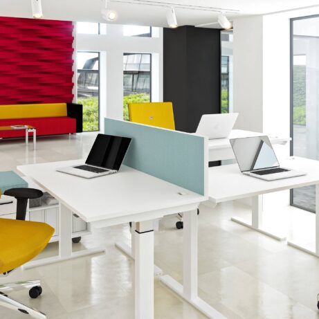 Dividing screens are an excellent way to break up working environments and offer users privacy, acting as a division between personal workspaces. System screens are available in a variety of finishes including upholstered, acrylic and MFC panels all complete with an aluminium trim.