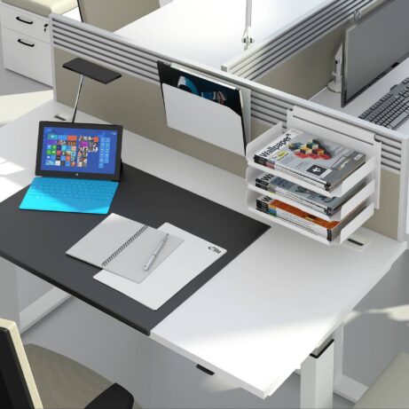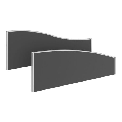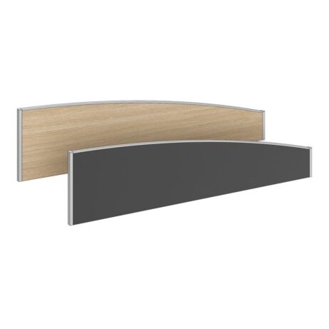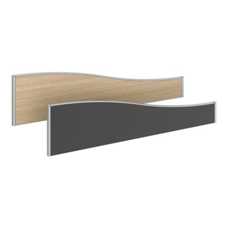 The frame comes in a standard rectangular screen with option to add a management rail, a curved panel or wave screen. With a variety of sizes, these screens are compatible with single workstations, pedestal, mid and end returns and 120-degree workstations.