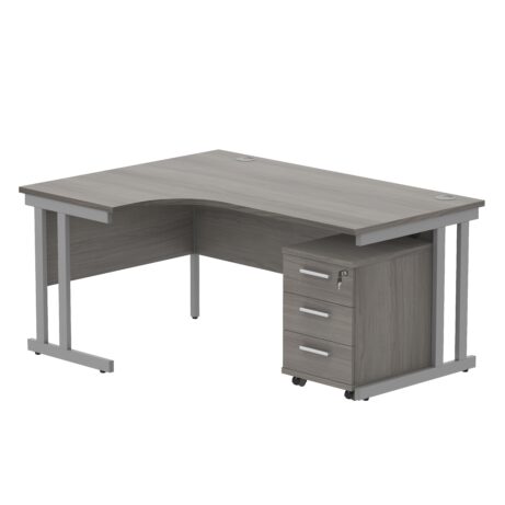 Our Left Hand Radial Desk with 2 Drawer Mobile Under Desk Pedestal has been designed with a steel double upright frame, for practicality, stability and an aesthetically pleasing office environment