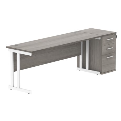 Double Upright Rectangular Desk + Desk High Pedestal (FSC)
