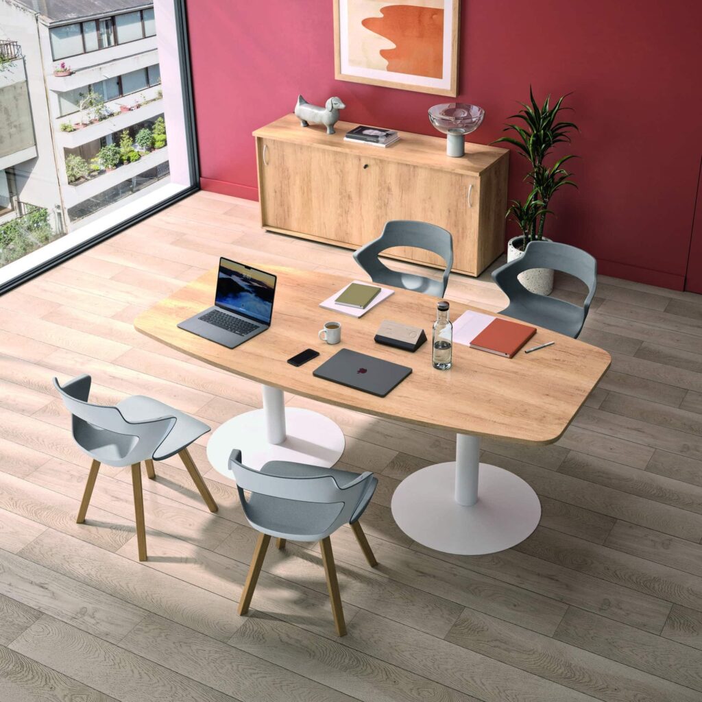 With the variety of different tops and legs shapes (cylindrical or trumpet) options, you can create aesthetic meeting spaces and meet your employees’ needs.