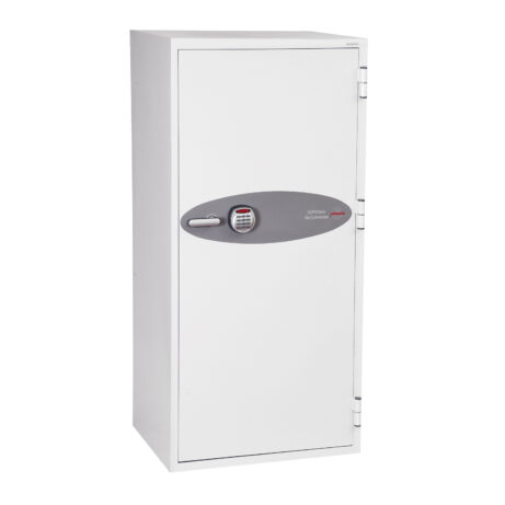 Protect your business’s documents and media with this fire resistant safe. Fitted with a high security electronic lock with a clear LED display and the facility to programme hidden or scrambled codes, this safe has been independently tested to European standards.