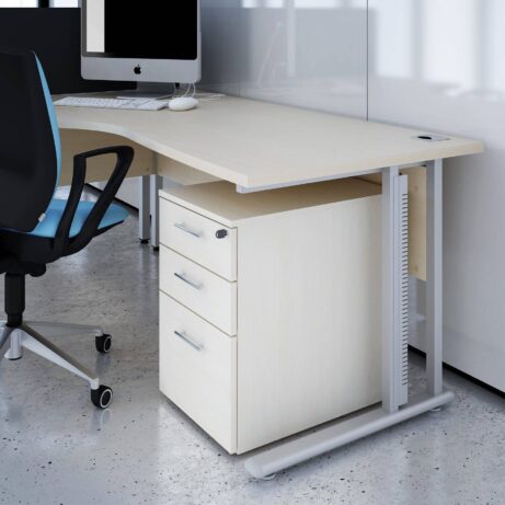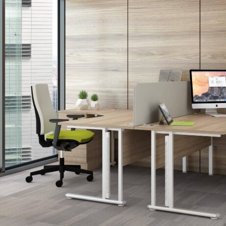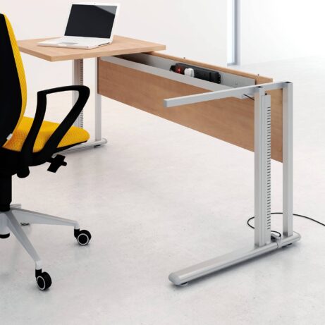 Vertical leg risers are compatible with the range to accommodate cables from the floor to the underside of the work surface. An optional horizontal cable tray can be positioned to the inside or outside of the modesty panel. This tray caters for cables under the work surface and access to the desktop via cable ports.