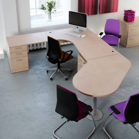 The Flexi range offers a slimline frame with a double upright cantilever leg. The range has been designed and engineered to offer a robust and durable solution. The leg frames are supported by an MFC modesty panel, integral to the structural integrity of the range.
