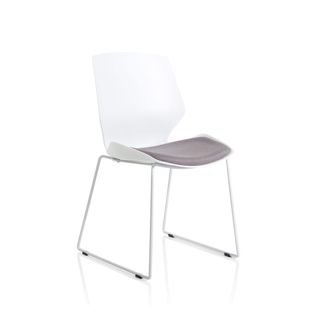 Florence Sled White Frame Fabric Seat Visitor Chair