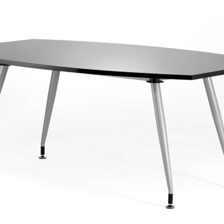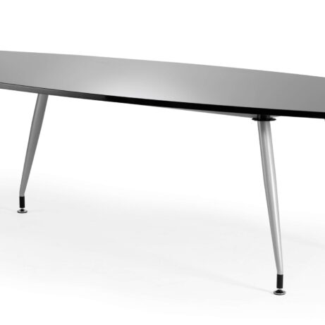 Elegant high gloss polished tops | Large seating area | Stylish tip to toe leg detail | Silver legs |Boat shaped for better team working | Height adjustments to feet | High sheen black finish