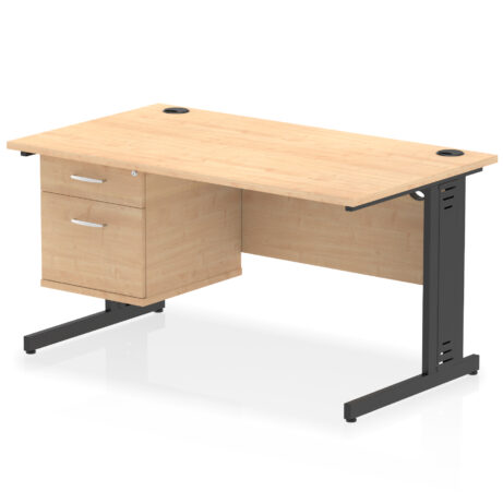 Impulse 1400mm Cable Managed Straight Desk With Single Fixed Pedestal