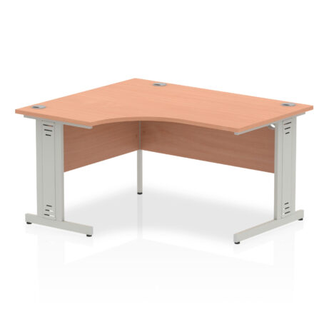 Impulse represents the best value contract office desking and storage available today. Created by specialist designers with a focus on all office furniture needs the products provide refinement on budget. The comprehensive range is fully guaranteed and quality assured.nn• Impulse contract 1400 wide crescent desk • 25mm tops • Heat resistant melamine finish • 18mm modesty panels • 2mm protective abs edging • Double strut legs • 3 cable ports • Height adjustable feet • Steel to steel fixings • 3 modesty panels slots • 600 deep • Deep set modesty panel (5″) allows for compatibility of most screen clamp fittings • Weight Capacity: 135Kg