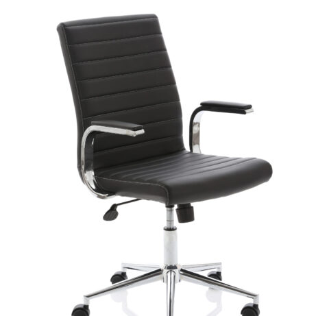 Impulse contract desk | 25mm tops | Heat resistant melamine finish | 18mm modesty panel | Double strut legs | Steel to steel fixings | Impulse mobile pedestal | Steel handles | Smooth running castors for mobility | Lockable drawers | Solid drawer construction | Ezra executive chair | Stylish stich detail | Soft touch bonded leather | Single lever lock tilt mechanism | Weight tension adjustment | Fixed padded arms | Gas lift tested up to 150kg | Usage: 8 hours