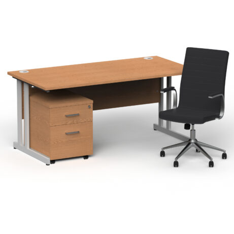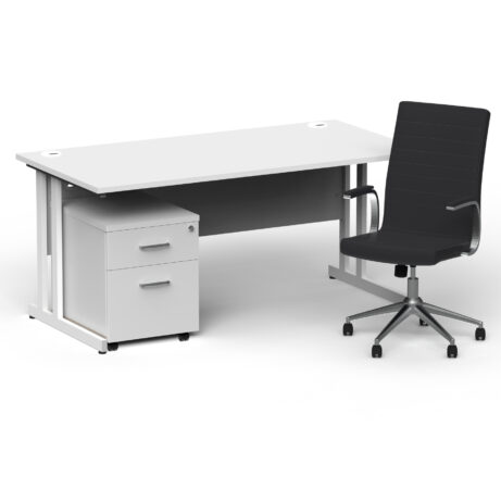 Impulse 1600mm Cantilever Straight Desk With Mobile Pedestal and Ezra Black Executive Chair