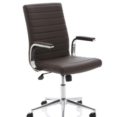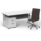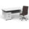 Impulse contract desk | 25mm tops | Heat resistant melamine finish | 18mm modesty panel | Double strut legs | Steel to steel fixings | Impulse mobile pedestal | Steel handles | Smooth running castors for mobility | Lockable drawers | Solid drawer construction | Ezra executive chair | Stylish stich detail | Soft touch bonded leather | Single lever lock tilt mechanism | Weight tension adjustment | Fixed padded arms | Gas lift tested up to 150kg | Usage: 8 hours