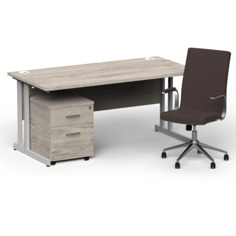 Impulse 1600mm Cantilever Straight Desk With Mobile Pedestal and Ezra Brown Executive Chair