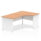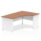 Impulse contract 1800 wide crescent desk | 25mm tops | Heat resistant beech melamine finish | 18mm modesty panel | 2mm protective abs edging | Matching wood panel end legs | 3 cable ports | Height adjustable feet | Steel to steel fixings | 3 modesty panel slots | 600 deep | Deep set modesty panel (5″) allows for compatibility of most screen clamp fittings | Weight Capacity 135Kg