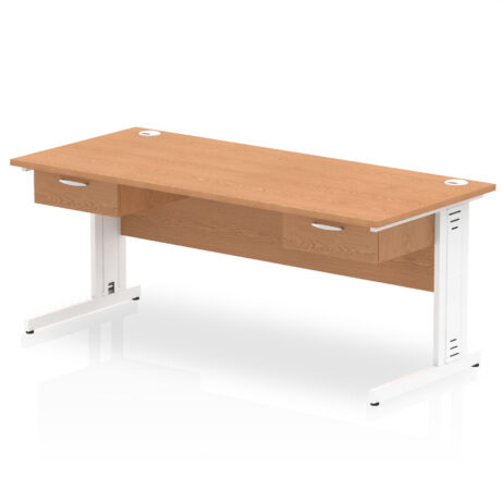 Impulse Cable Managed Straight Desk White Frame With Two One Drawer Fixed Pedestals