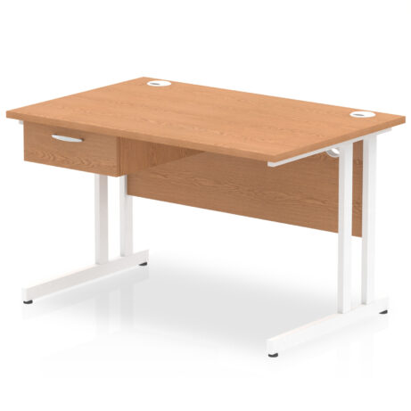 Impulse Cantilever Straight Desk White Frame With Single One Drawer Fixed Pedestal