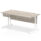 • Impulse contract desk • 25mm tops • Heat resistant melamine finish • 18mm modesty panels • 2mm protective abs edging • Double strut legs • 2 cable ports • Height adjustable feet • Steel to steel fixings • 2 modesty panels slots • Deep set modesty panel (5) allows for compatibility of most screen clamp fittings • Weight Capacity: 135Kg • Fixed pedestal