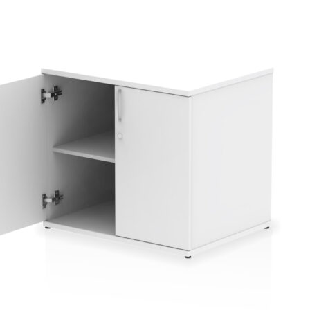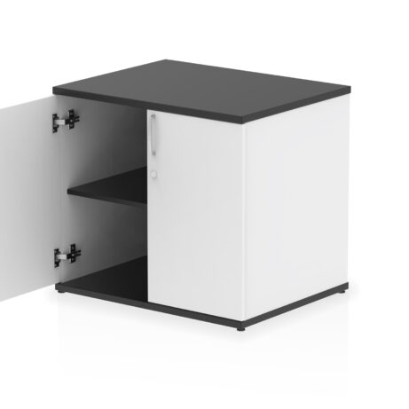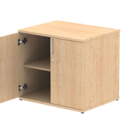 Impulse 800 wide cupboard | 25mm thick wood finish | Fits on end of 600 deep desk | 2mm abs protective edges | Steel to steel fixings | 18mm side walls | Adjustable shelf | Adjustable feet | Heat resistant melamine finish | Solid back board | Matching doors | Weight Capacity: 20Kg per shelf