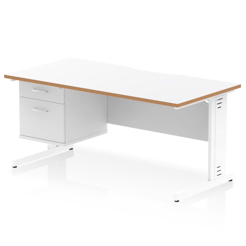 Impulse Scalloped Edge 1600mm Cable Managed Straight Desk With Single Fixed Pedestal
