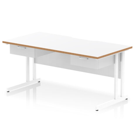 Impulse Scalloped Edge Cantilever Straight Desk With Two One Drawer Fixed Pedestals