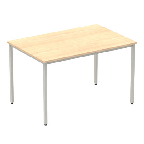 Impulse freestanding meeting table • Classic rectangular shape • Provides excellent team working environment • 18mm thick top • Attractive silver coated box frame leg • 2mm abs protective edging • Heat resistant beech melamine finish • Weight Capacity: 100Kg