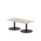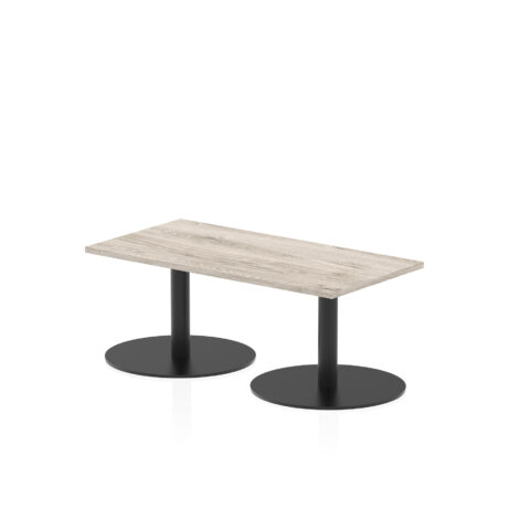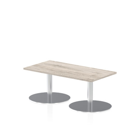 25mm thick desk top profile | Dual, brushed stainless steel effect circular base (580mm diameter) | Brushed stainless steel pillars (76mm diameter) | Weighted base provides stability | Two part bolted frame system
