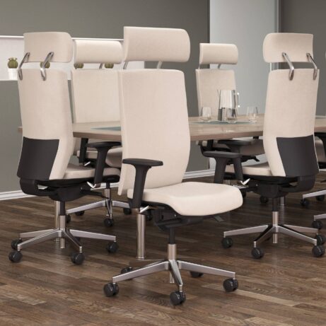 A headrest with metallic detail, polished aluminium base and arms, with a chrome gas stem can also be selected to further enhance the high quality appearance.