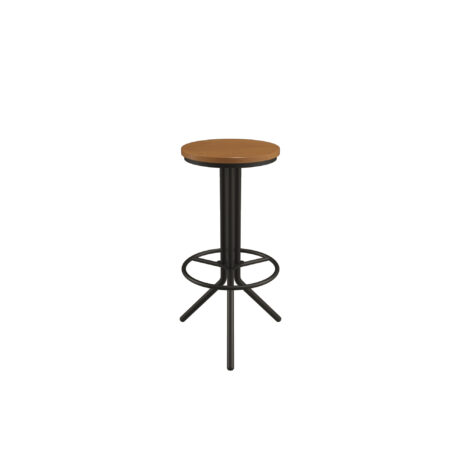 Durable, stylish seating for busy spaces. The Ledge Stool pairs an industrial rustic wood finish seat with a powder-coated steel frame. Its tripod legs ensure stable support, while a fixed foot ring adds comfort. Ideal for Cafe & Dining environments, dining areas and casual breakout spaces, this 420 x 420 mm seat at 760 mm high fits counter and bar-height settings.