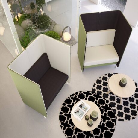 Oases presents an elegant collection of self-contained work zones for open-plan spaces. The upholstered surround forms a personal retreat for tasks that require an element of privacy and acoustic insulation, in otherwise distracting environments.