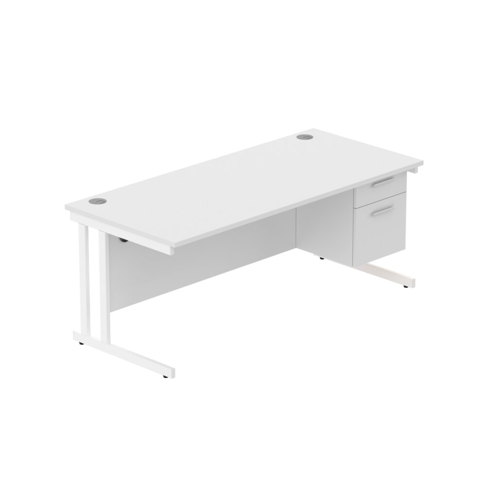 Office Rectangular Desk with Steel Double Upright Cantilever Legs + 2 Drawer Fixed Pedestal (FSC)