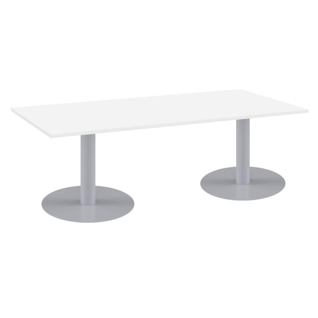 This contemporary meeting table has a rectangular top and twin central legs, which give unencumbered leg room. The wide bases provide excellent stability and a range of top finishes allow this meeting table to fit a variety of office aesthetics.