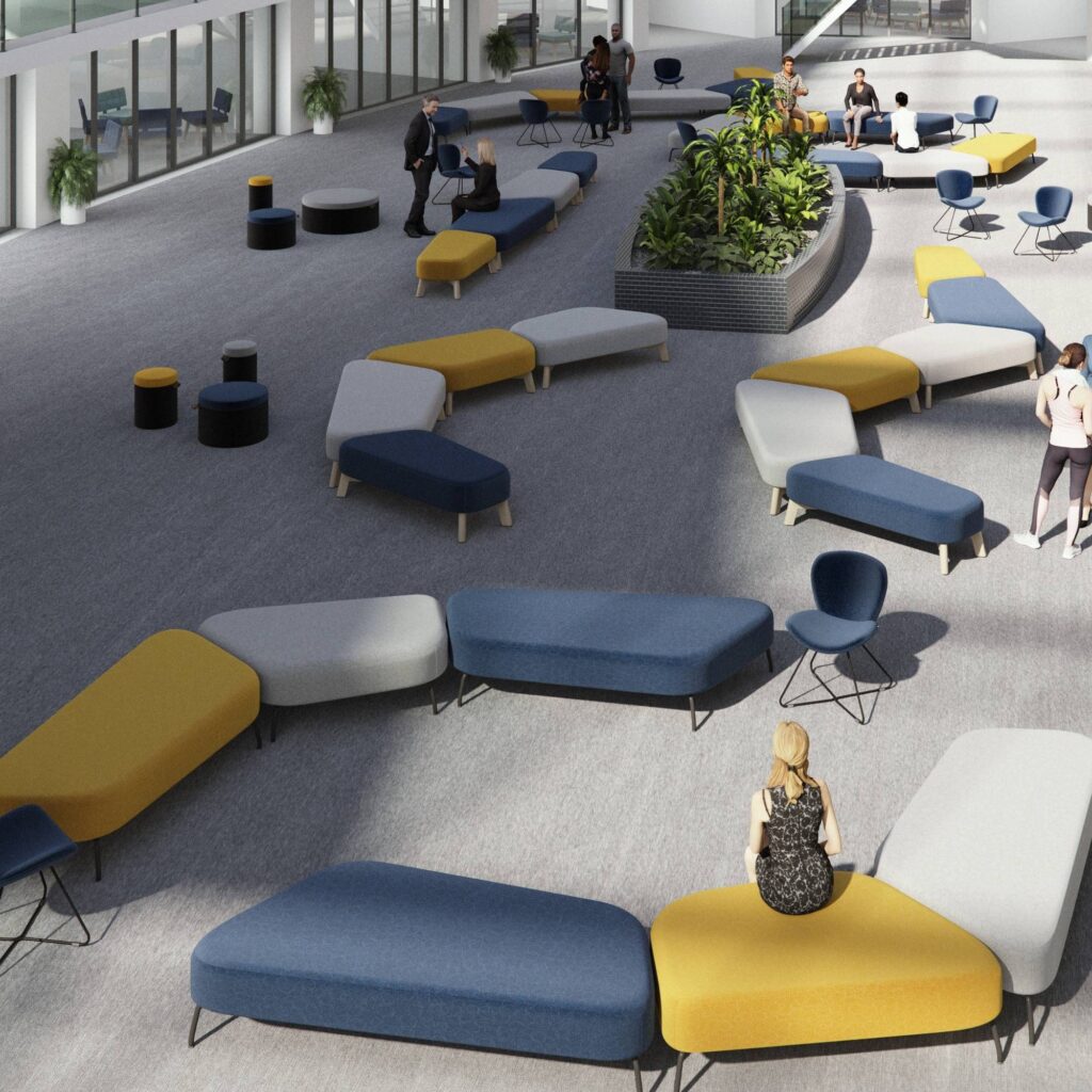 Polka is a versatile, fun modular seating range with soft curves and gentle waterfall seat edges. Its low, wide stance and irregular shape provide a striking alternative for sitting, relaxing and touchdown working.