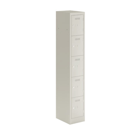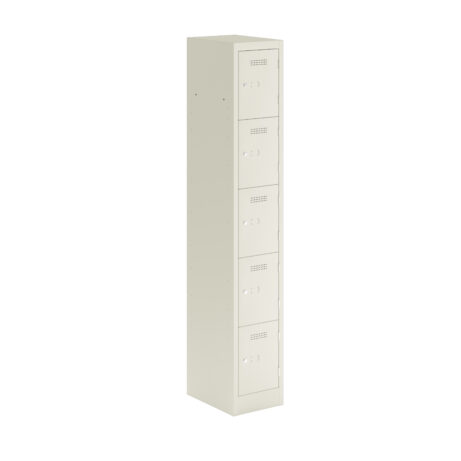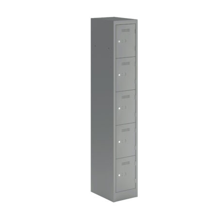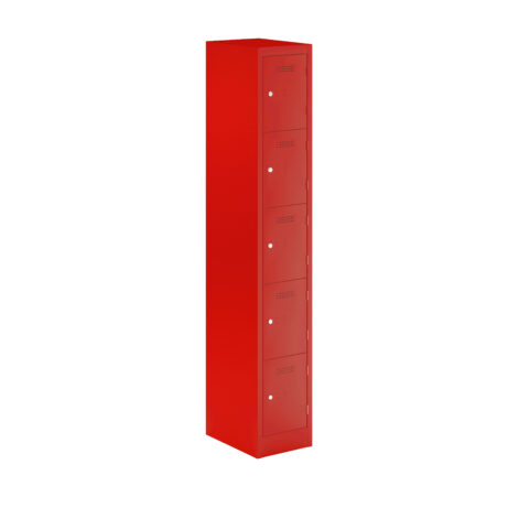 A five door locker with a durable steel frame and wide choice of door colours. Perfect for storing workwear and personal belongings.
