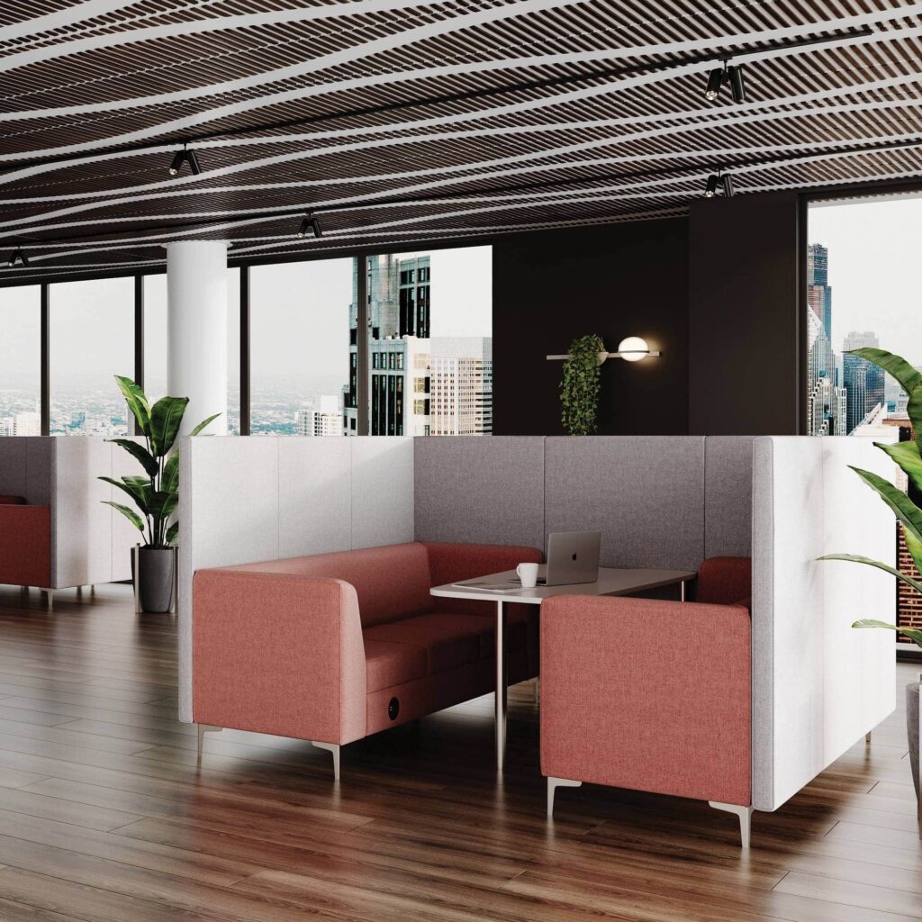 The Simoom Booths collection features pre-configured booths that include seating, tables, and joining screens, designed for a variety of workspace needs. These booths provide a practical solution for creating stand-alone informal office or meeting areas for 2, 4, or 6 people. With integrated cable management and power point options, Simoom Booths combine functionality and comfort, making them perfect for collaborative and private workspaces alike. Choose from a range of finishes, including black, white, or chrome legs, to seamlessly integrate Simoom Booths into your office environment.