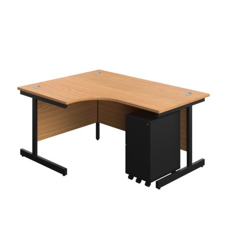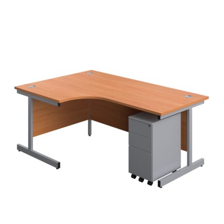 Single Upright Left Hand Radial Desk + Slimline Steel Pedestal 3 Drawers (FSC)