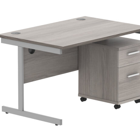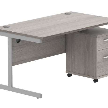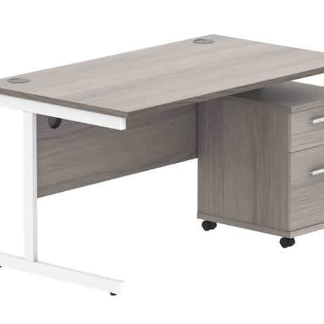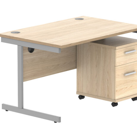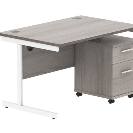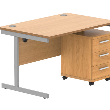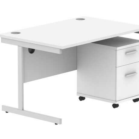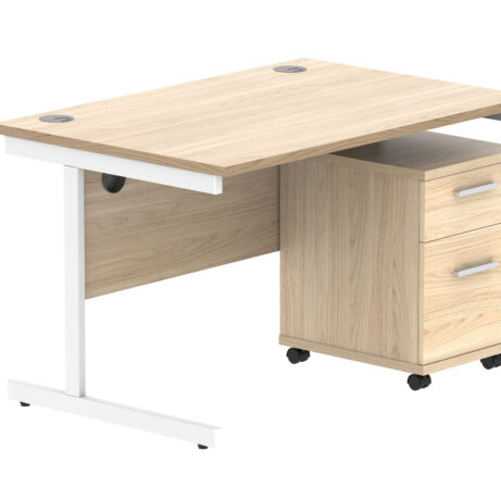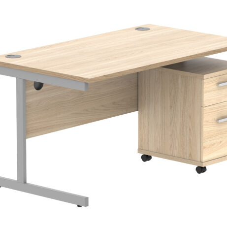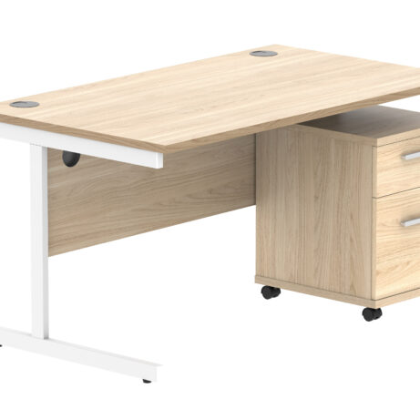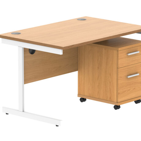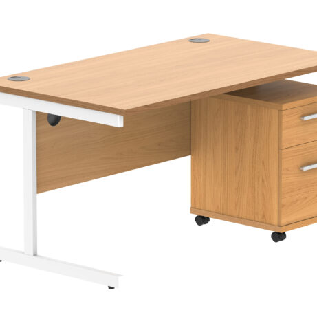 Single Upright Rectangular Desk + 2 Drawer Mobile Under Desk Pedestal (FSC)