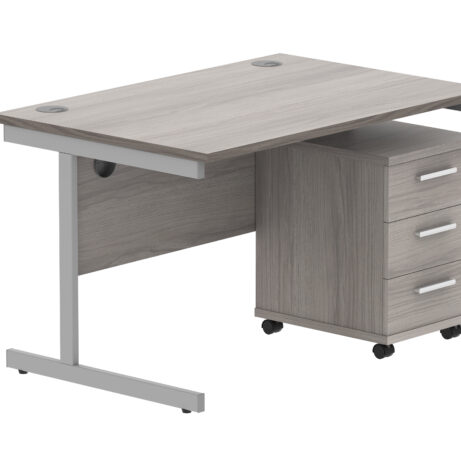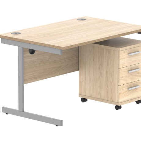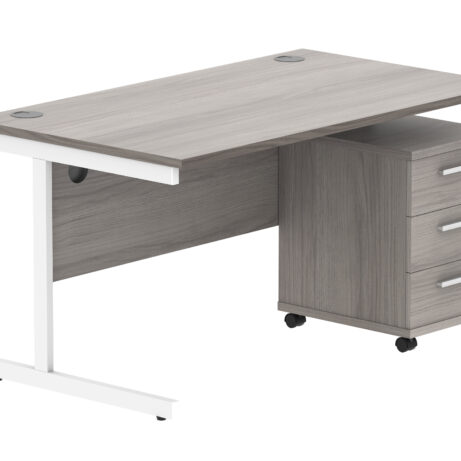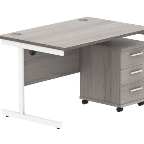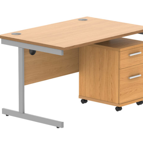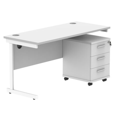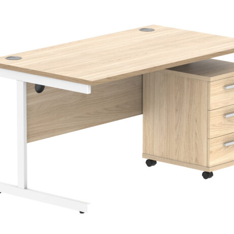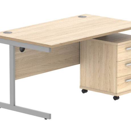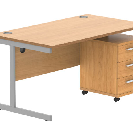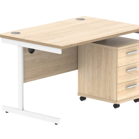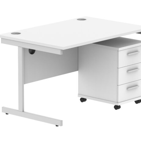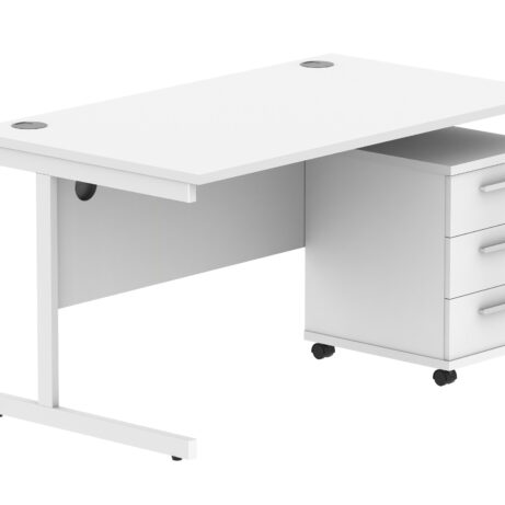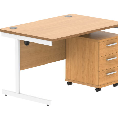 Single Upright Rectangular Desk + 3 Drawer Mobile Under Desk Pedestal (FSC)