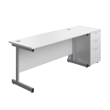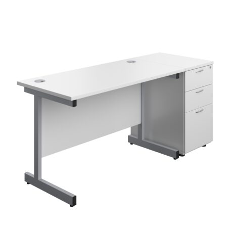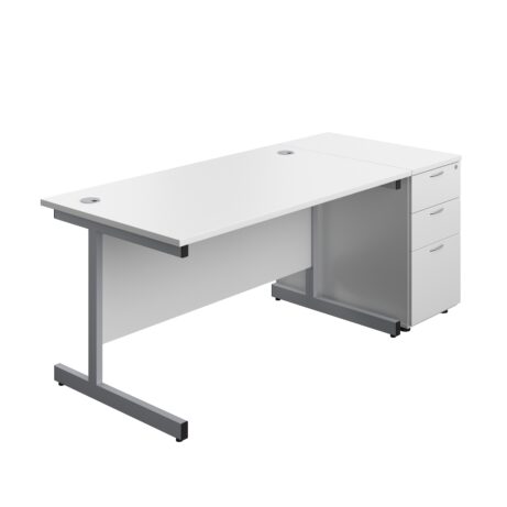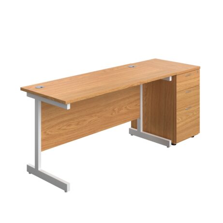Single Upright Rectangular Desk + Desk High 3 Drawer Pedestal (FSC)